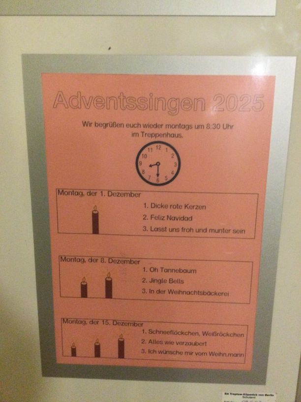 Alle Jahre wieder gibt es in der Vorweihnachtszeit das Adventssingen der Albatros-Schule. Immer am Montagmorgen um 08:30 Uhr versammeln sich alle Albatrosse im Treppenhaus des Schulhauses, um gemeinsam Weihnachtslieder zu singen.