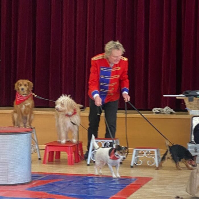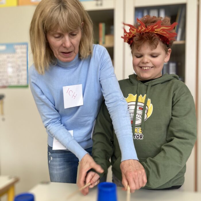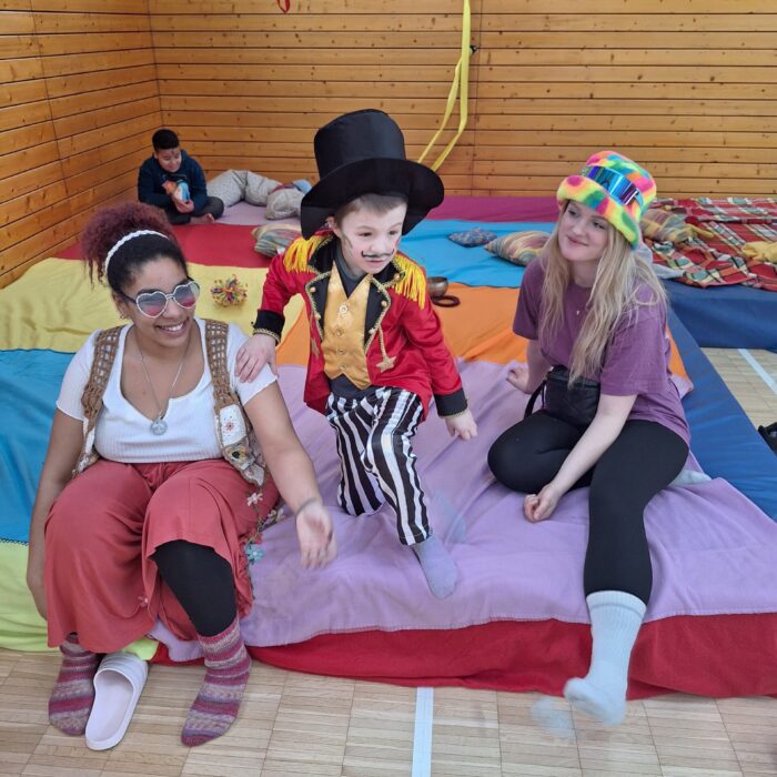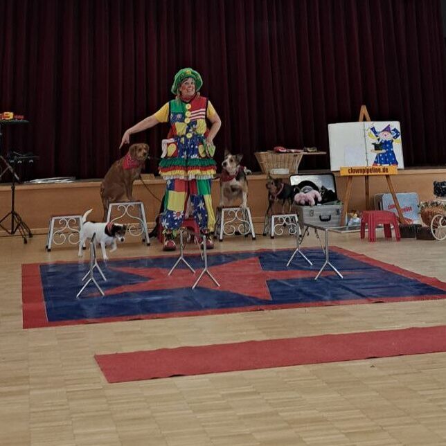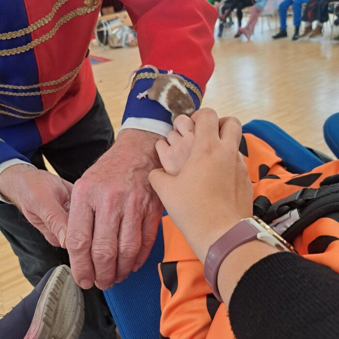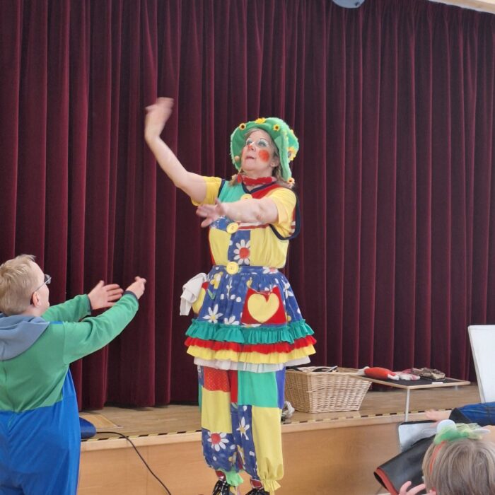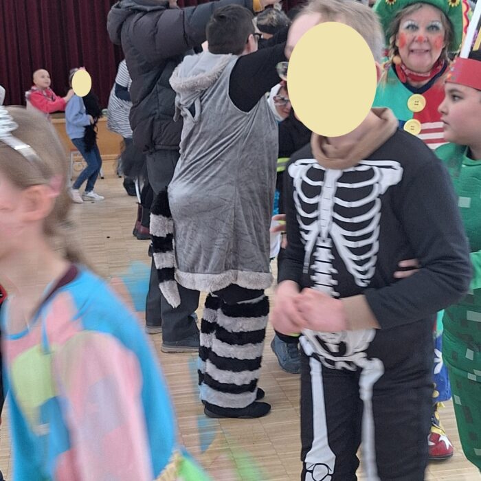Die Klassen der Unterstufen starteten ihre Faschingssause in der Turnhalle mit einer Kostümvorstellung und tanzten gemeinsam zu einem Lied. Anschließend hatten sie Besuch von der Clownin Pipeline in der Aula. Pipeline bot eine Tiershow mit Hunden, zwei Mäusen, einem Kaninchen und einer Schlange! Wer etwas Ruhe brauchte, konnte es sich auf einer Entspannungswiese (vorbereitet durch die TherapeutInnen) in der Turnhalle gemütlich machen.