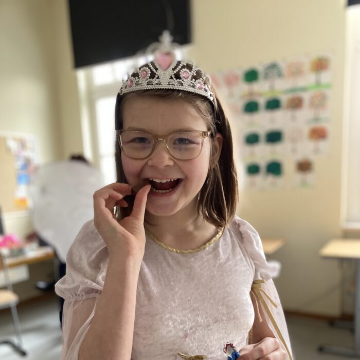 Die Klassen der Mittelstufe hatten bei ihrer Party am Faschingsdienstag viel Spaß in der blauen Etage. Bunte Kostüme, eine kleine Modenschau, tolle Musik und Spiele sorgten für gute Laune. In den Klassenräumen erwarteten sie viele lustige Stationen mit Geschicklichkeitsspielen, Schminken, einer Saftbar und natürlich Disco.